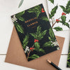 This Nadolig Llawen Black Holly Welsh Christmas Card from Catherine Lewis Design features an intricately drawn wintery botanical illustration.