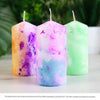 This craft kit includes everything you'll need to dye our own candles including, five bottles of coloured dye [turquoise, green, orange, purple and fuchsia] two tester pillar candles (10cm x 2.1cm x 2.1cm) one pair of disposable gloves, and an easy to follow instruction booklet to guide you as you create your own marbled candles.