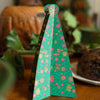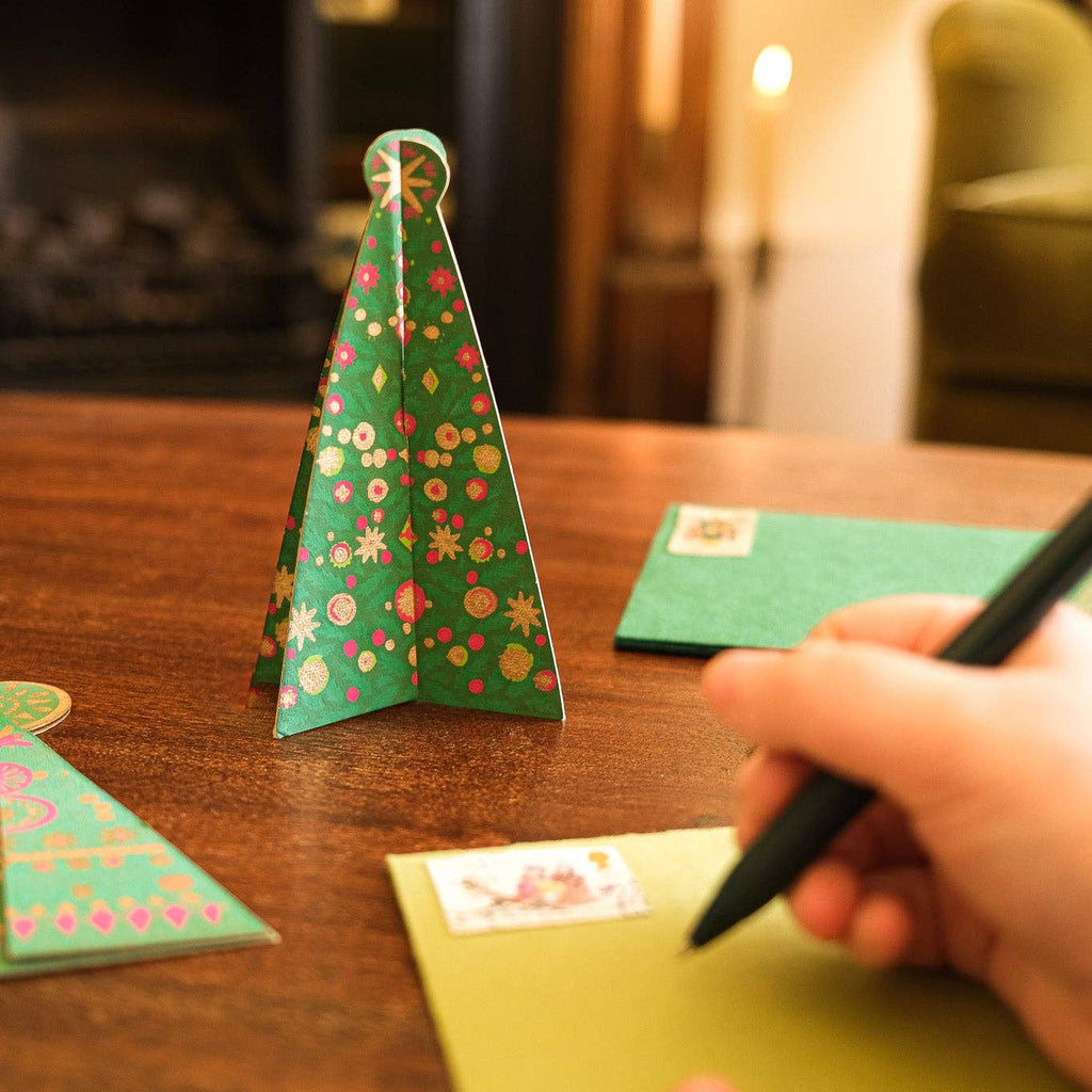 Two pieces of paper slot into one another to create a three-dimensional, pop-up card. Each card is supplied with a green envelope for easy posting.