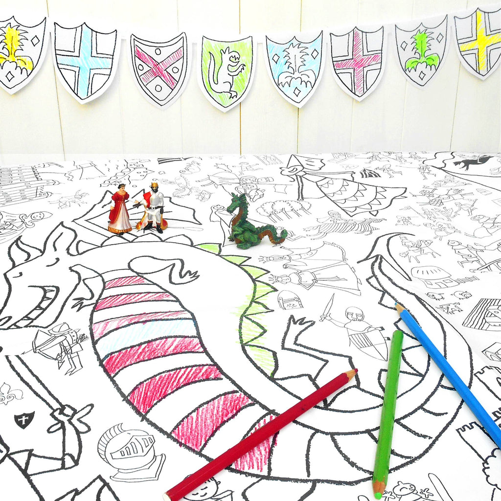 This Knight and Maiden Giant Colouring In Poster Tablecloth from EggNogg Colour In is an ideal activity for rainy-days.