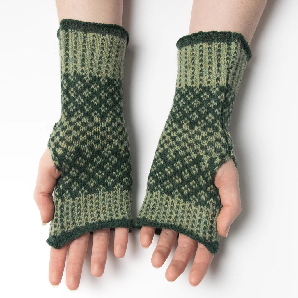 These Fair Isle 100% Merino Wool Fingerless Gloves from Elin Manon have been hand framed in Elin's Carmarthenshire studio and made from ethically sourced RWS wool and Oeko-Tex Certified.
