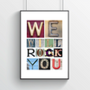 The We Will Rock You art print is supplied with a certificate detailing the exact location of each letter. Perfect gift for music fans especially those of Queen and Freddie Mercury.