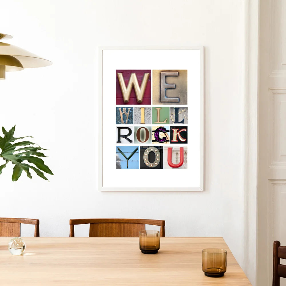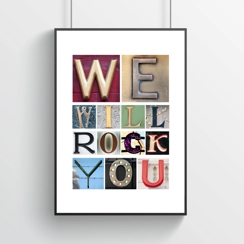 This We Will Rock You Queen and Freddie Mercury Letters from London A4 Art Print from Fonted has been created using photographs of letters found around London.