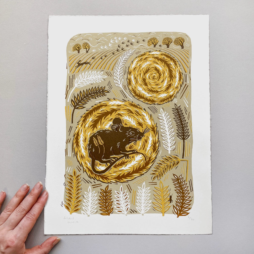 This Harvest Mouse Limited Edition Screen Print from Folded Forest has been screen printed by hand in their West Yorkshire studio.