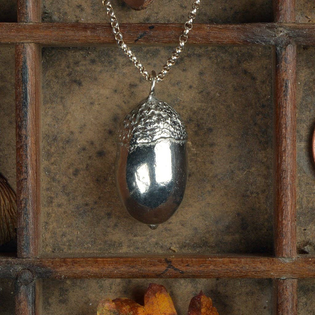 This Pewter and Sterling Silver Acorn Necklace from Glover & Smith has been designed by Ed and Judy Glover and made by their skilled team.