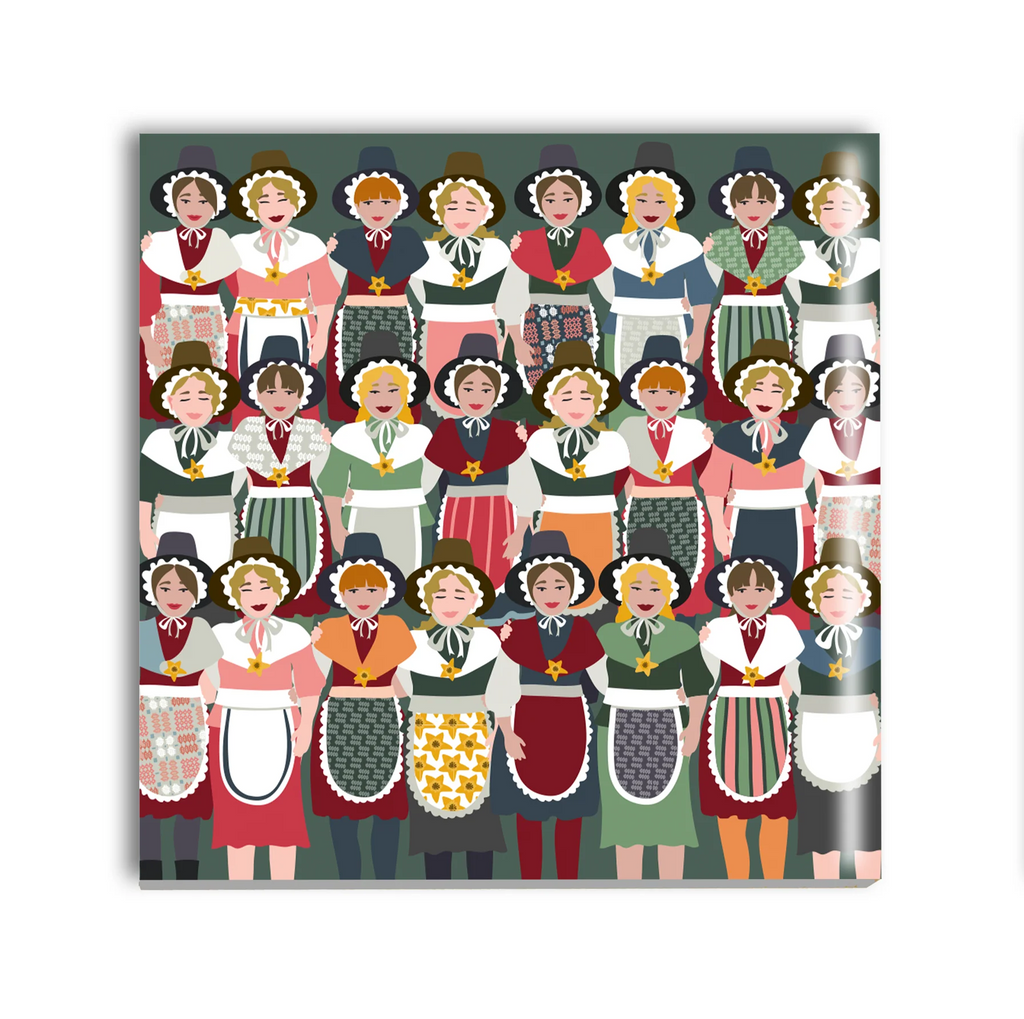 The design features Welsh Ladies in traditional costume wearing daffodils.