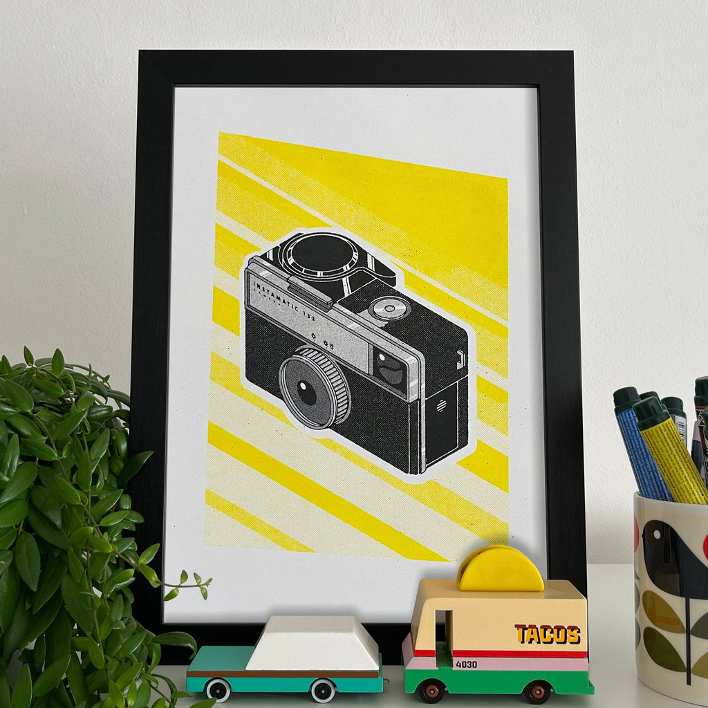 This Kodak Instamatic 133 Camera Risograph Art Print from Mockup Goods Co. has been designed and printed by Matthew Storrow in Liverpool.