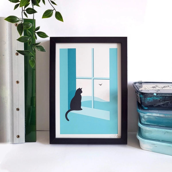 Owen's artistic vision embraces negative space and bold, flowing shapes, inviting viewers on an adventure through the landscape. His prints, characterised by a minimalist approach, focus less on intricate details and more on capturing the emotional essence of a place—conjuring hazy memories of childhood visits and fleeting moments from cherished holidays. The result is prints with a serene, dream-like quality.