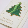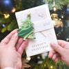 The greeting card itself is made from 100% recycled cotton paper and comes with a peel-and-seal envelope. The festive message "Seasons Greetings" is printed in gold on the front, making it a beautiful way to send festive cheer to a loved one this Christmas with a keepsake decoration they can treasure for years to come.