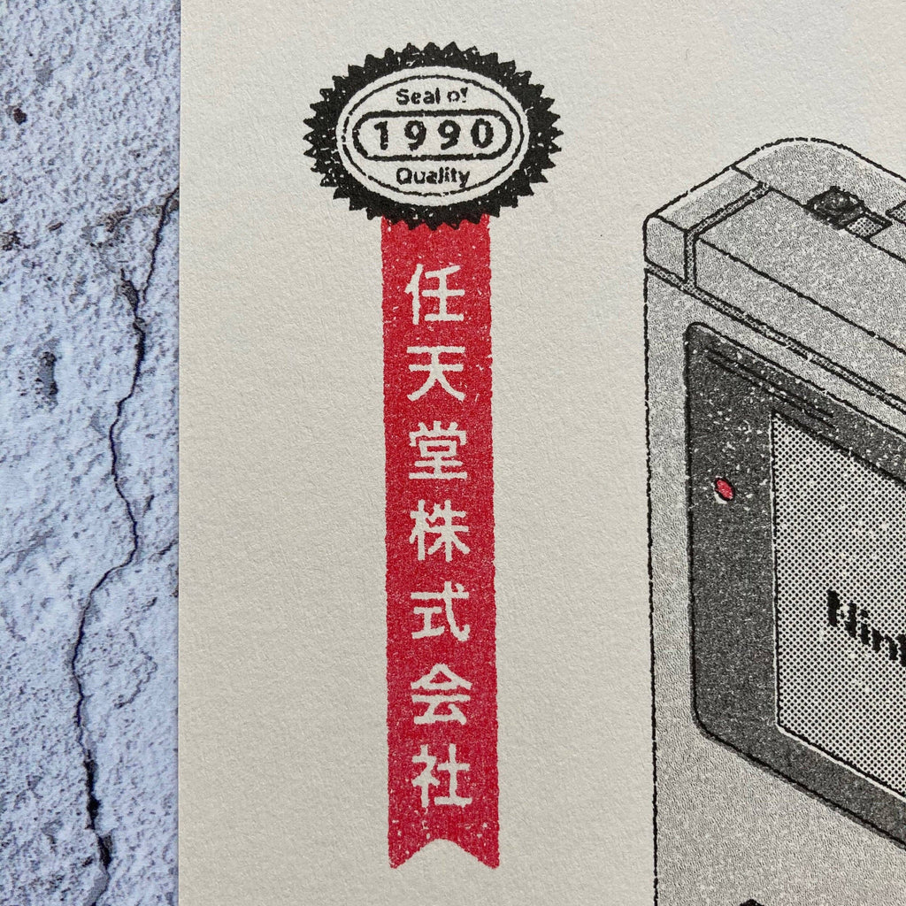 This Nintendo Gameboy Risograph Art Print from Mockup Goods Co. has been designed and printed in Liverpool by artist Matthew Storrow.