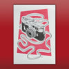 Inspired by Matthew's love of retro gadgets and physical media this classic camera has been printed in two colours - bright red and black. The art print would make the ideal gift for photographers and fans of vintage gadgets and cameras.