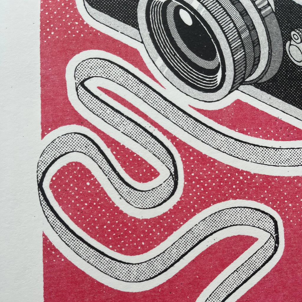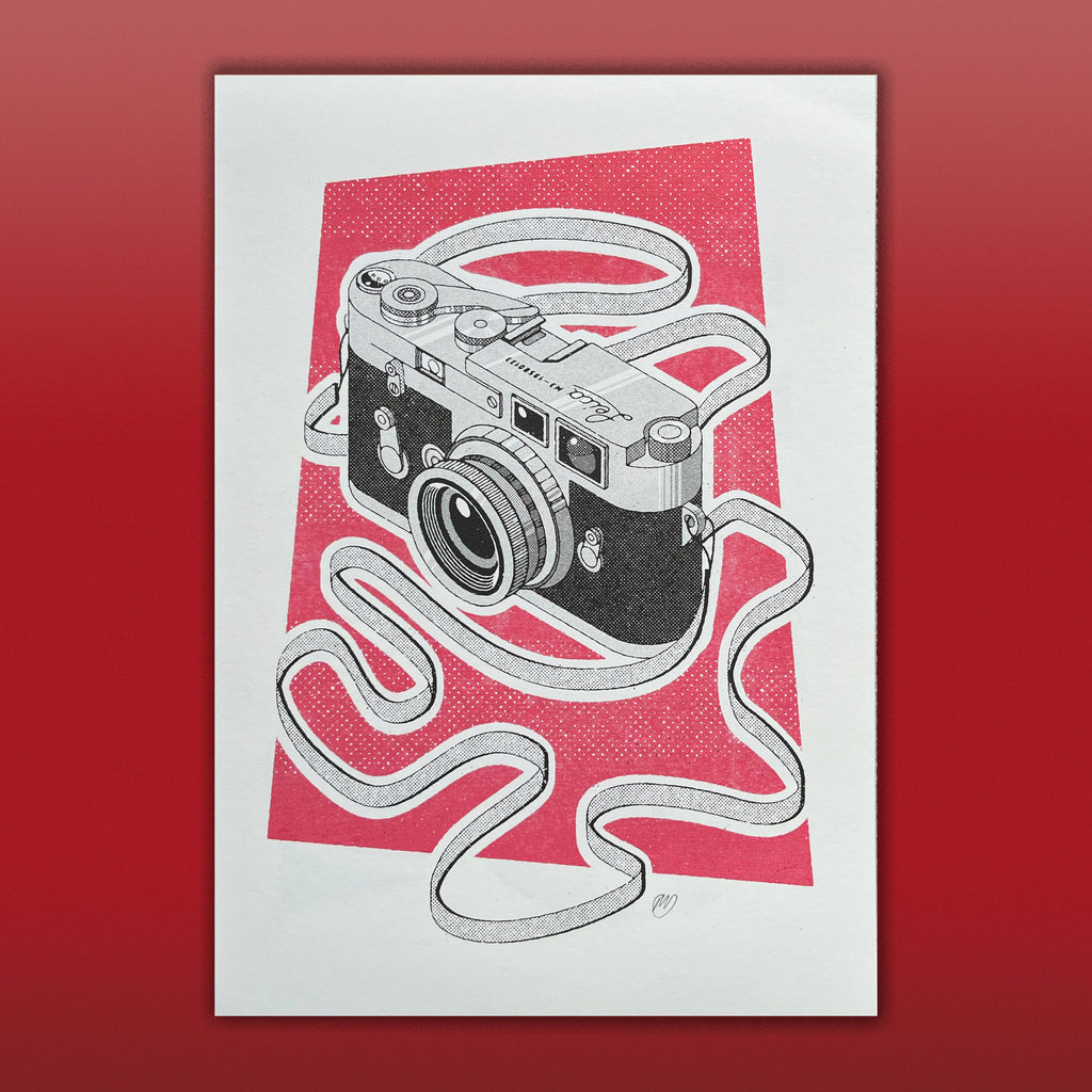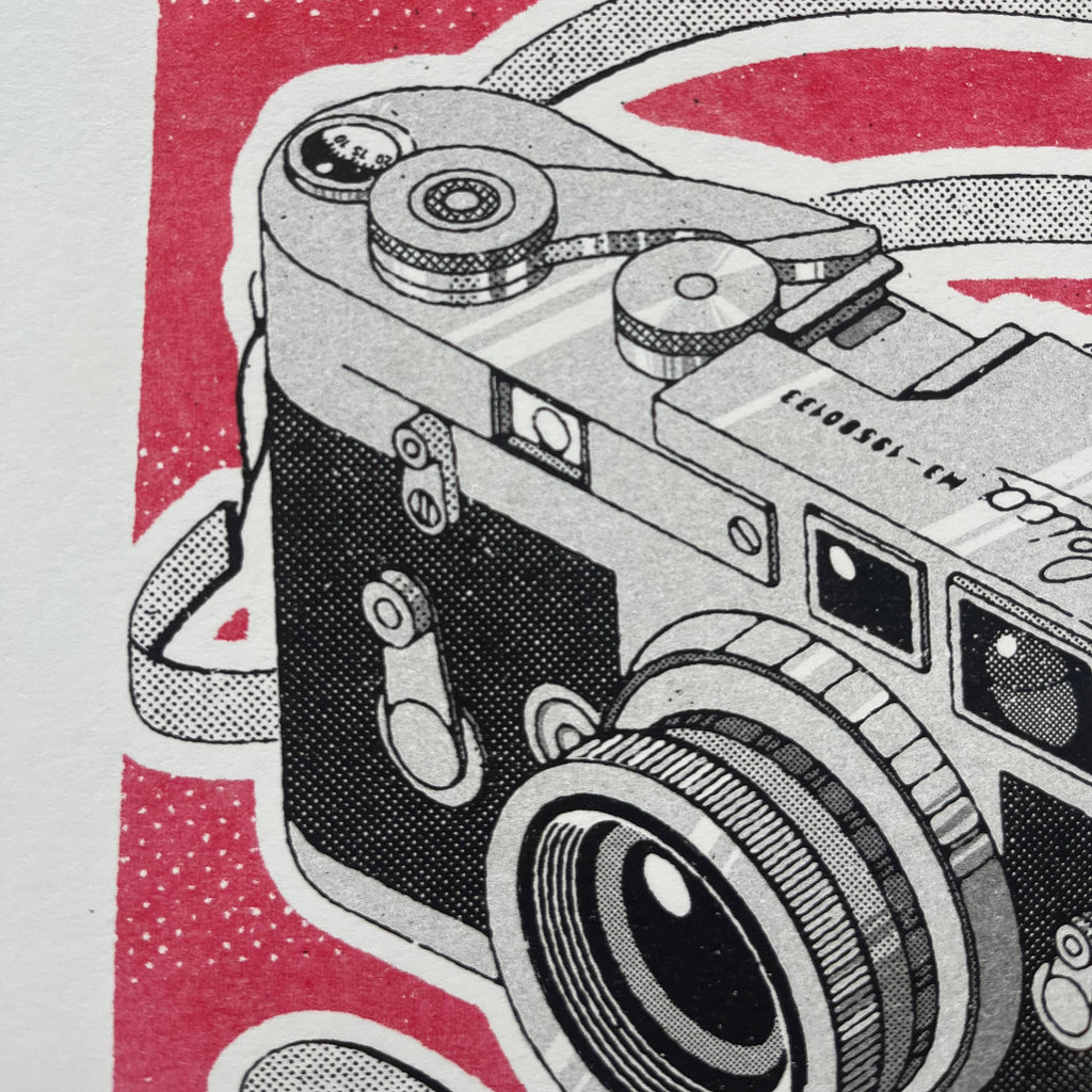 This Leica M3 Camera Risograph Art Print from Mockup Goods Co. has been designed and printed by Matthew Storrow in his Liverpool based studio.