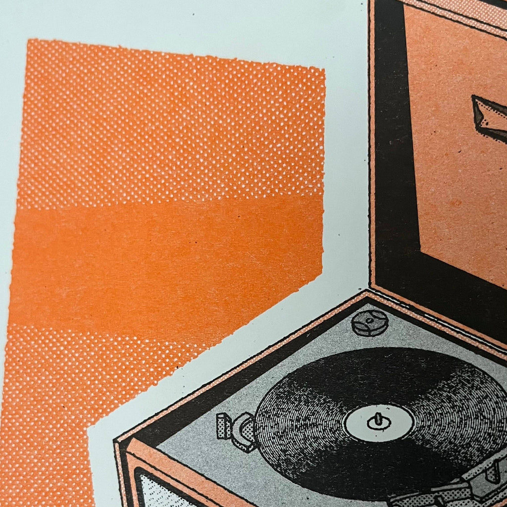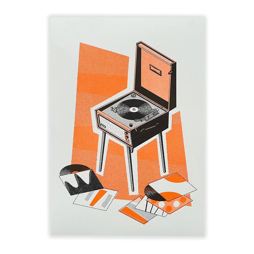 This Record Player Vinyl Risograph Art Print from Mockup Goods Co. has been designed and printed by Matthew Storrow in his Liverpool based studio.