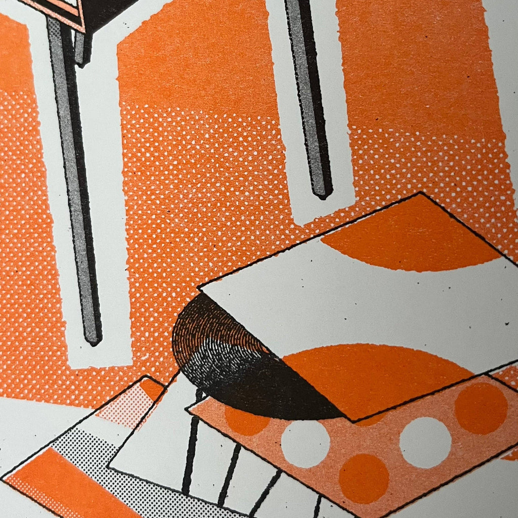 Risograph is a stencil based printing method where each separate colour is applied through a different stencil. This means each print is different and may have slightly offset colours, giving them a slightly vintage aesthetic.