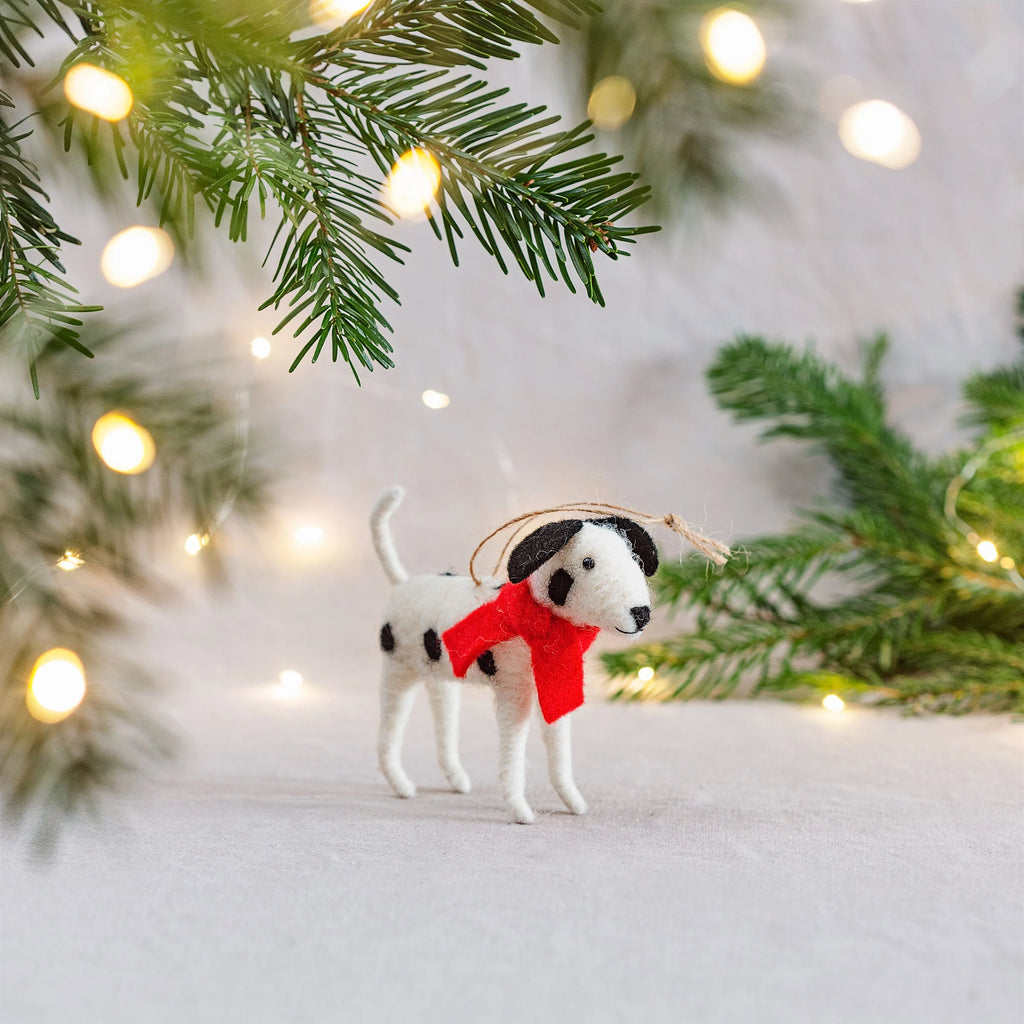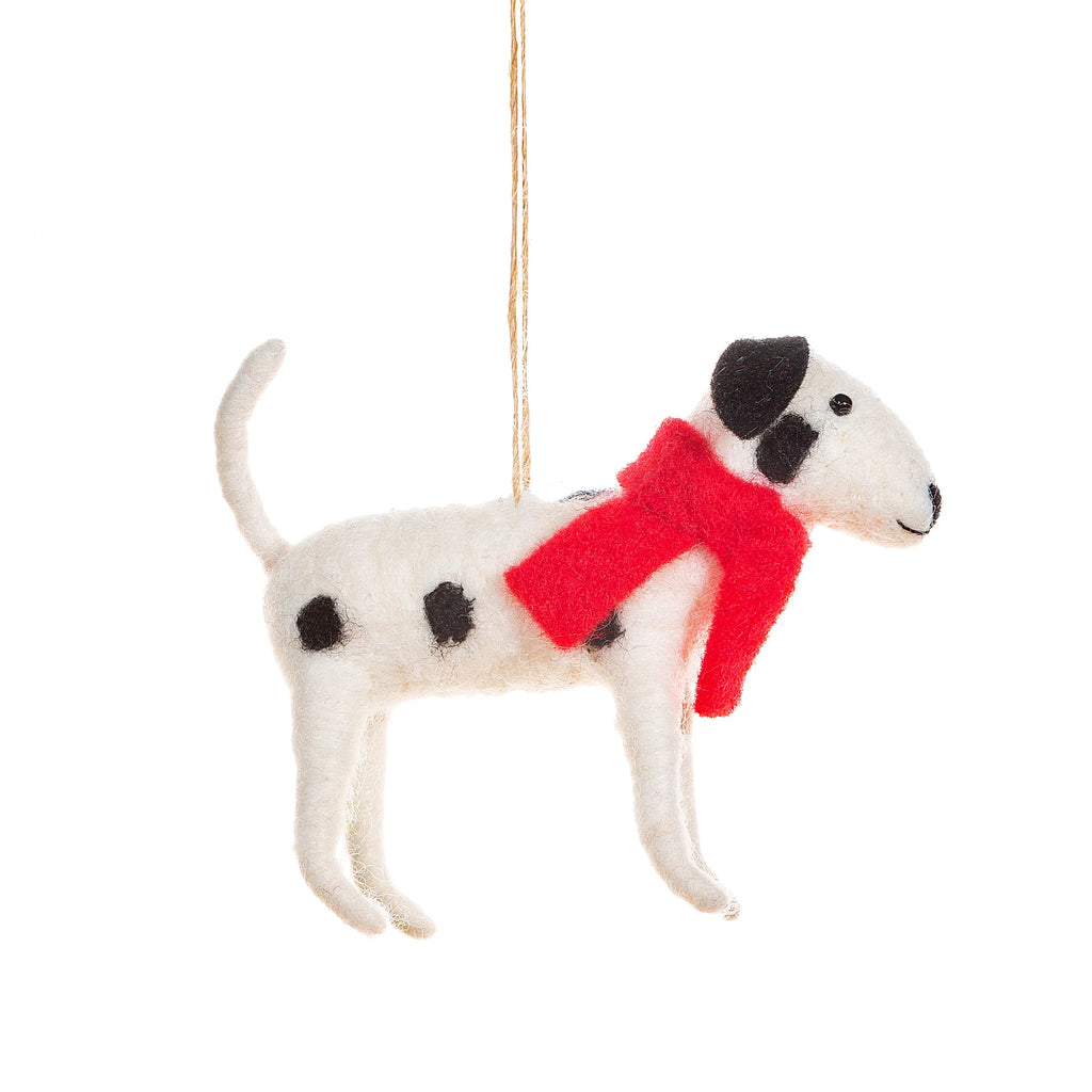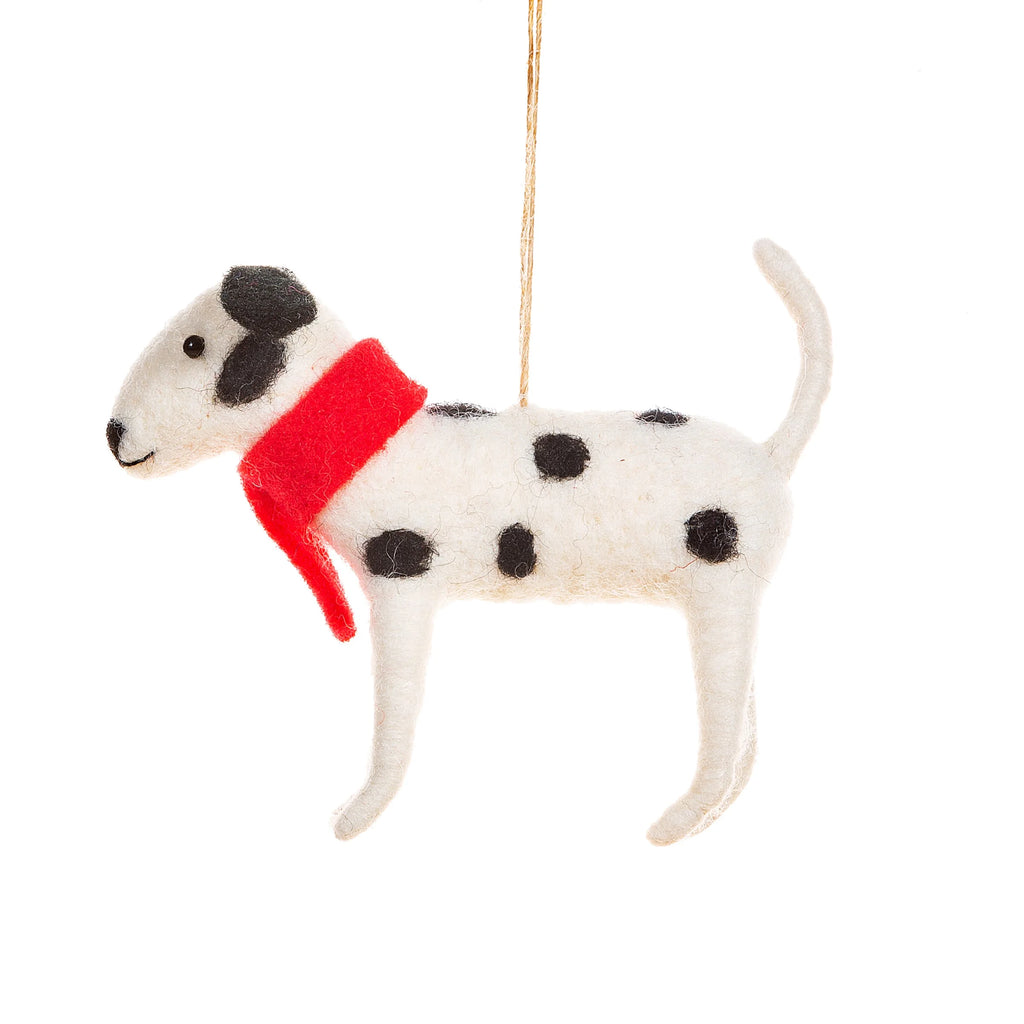 This Dalmatian in a Red Scarf Felt Hanging Decoration from Sass and Belle has been handcrafted from wool and polyfoam.