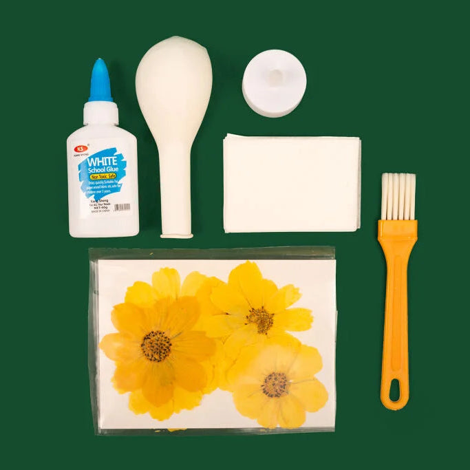 Contents: Tissue paper, water soluble, non-toxic PVA glue, application brush, latex balloon, 10 dried daisies, and 1 tealight votive with 50 hours battery power.
