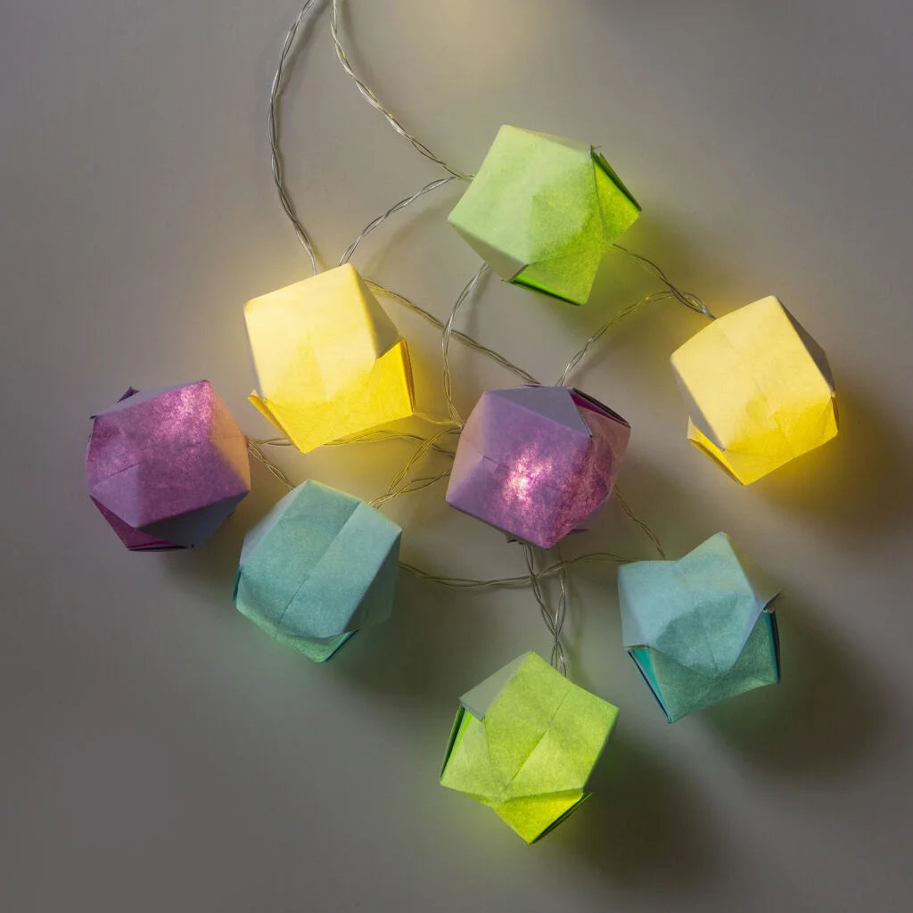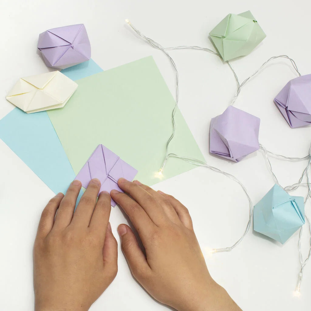 Use the origami paper and string lights included in this kit to make your very own paper lanterns! An ideal rainy-day activity for a loved one or creative friend, or great to make for decorating for parties.