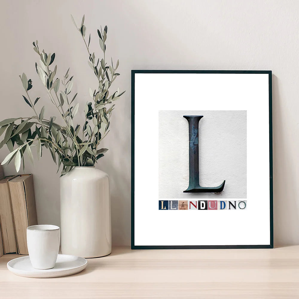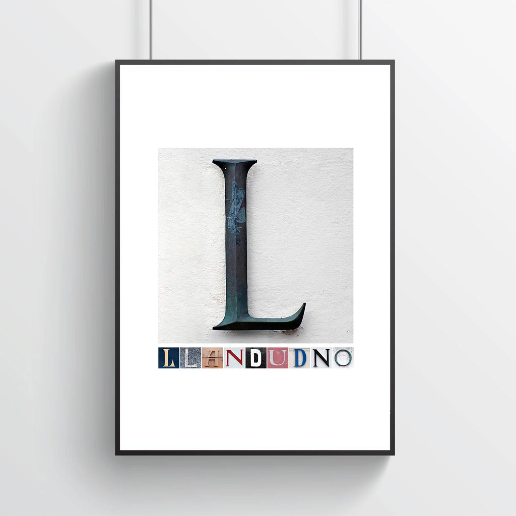 This Unframed L is for Llandudno A4 Art Print from Fonted has been created using photographs of letters and font photographed from buildings around Llandudno in North Wales.