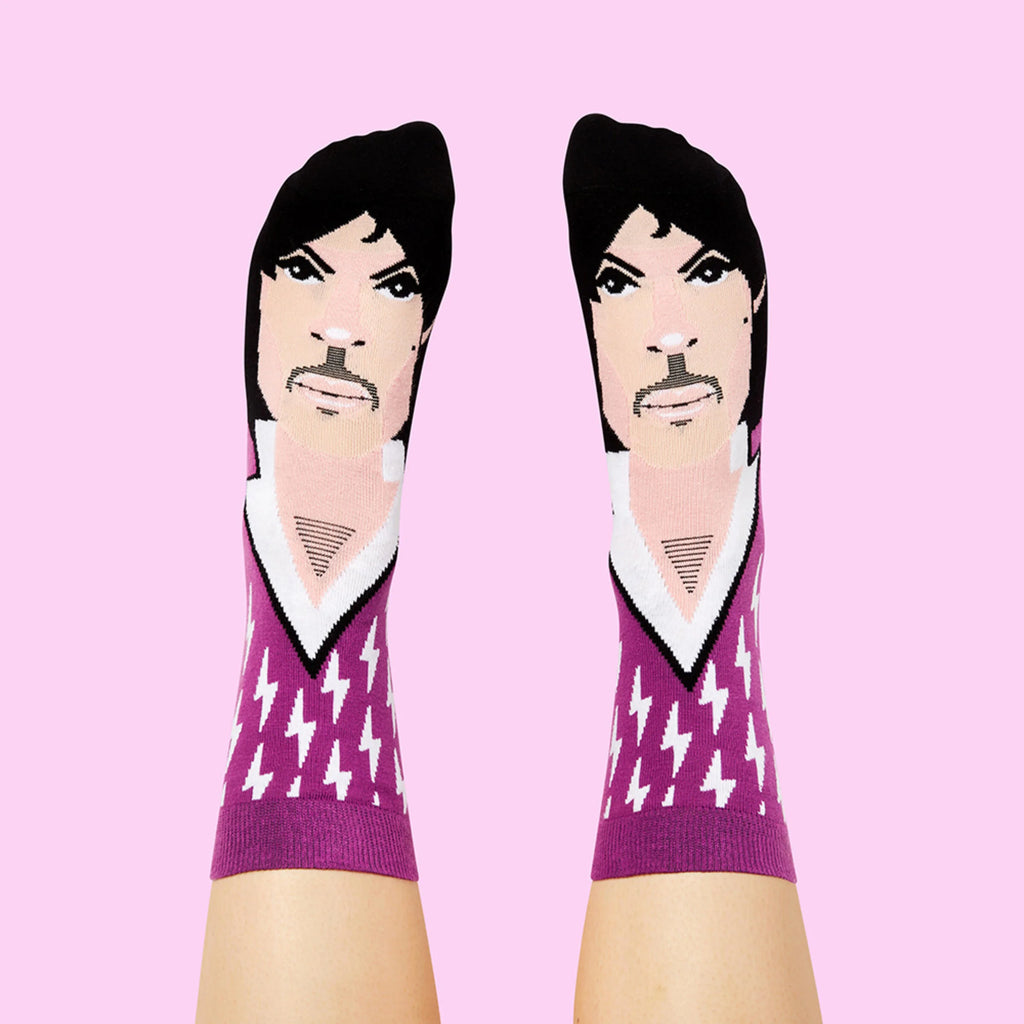 Featuring the artist formally known Purple Feet, these funky musician socks would look amazing with a purple suit and frilly white blouse! The ideal gift for music fans and purple lovers.